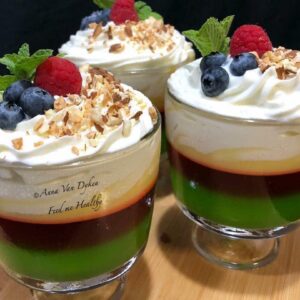 • Make jelly and , pour into individual dishes, let set in the fridge before adding the second layer of jelly.